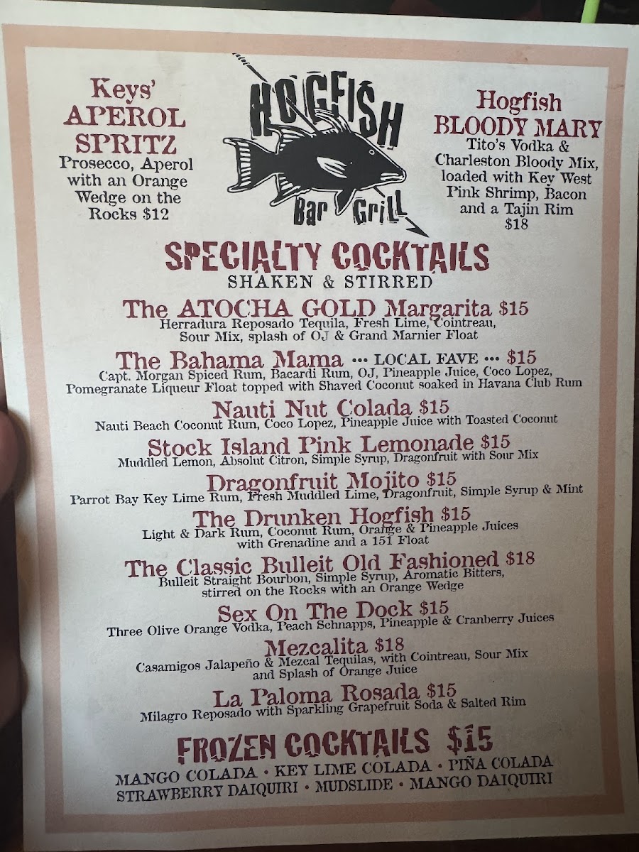 Hogfish Bar & Grill is a gem located off the beaten path, offering a delightful escape into the heart of Island cuisine. Renowned for its emphasis on fresh, expertly cooked seafood, highlights include their acclaimed Lobster Bisque and the succulent Hogfish stuffed with crab meat. The inviting ambience features live music and stunning water views, creating an enjoyable dining experience. Guests rave about the friendly service and quick meal delivery, making it a favorite among locals and visitors alike. Whether you’re savoring the Stock Island Mixed Grill or indulging in a classic key lime pie, this restaurant embodies the vibrant flavors of the Keys.